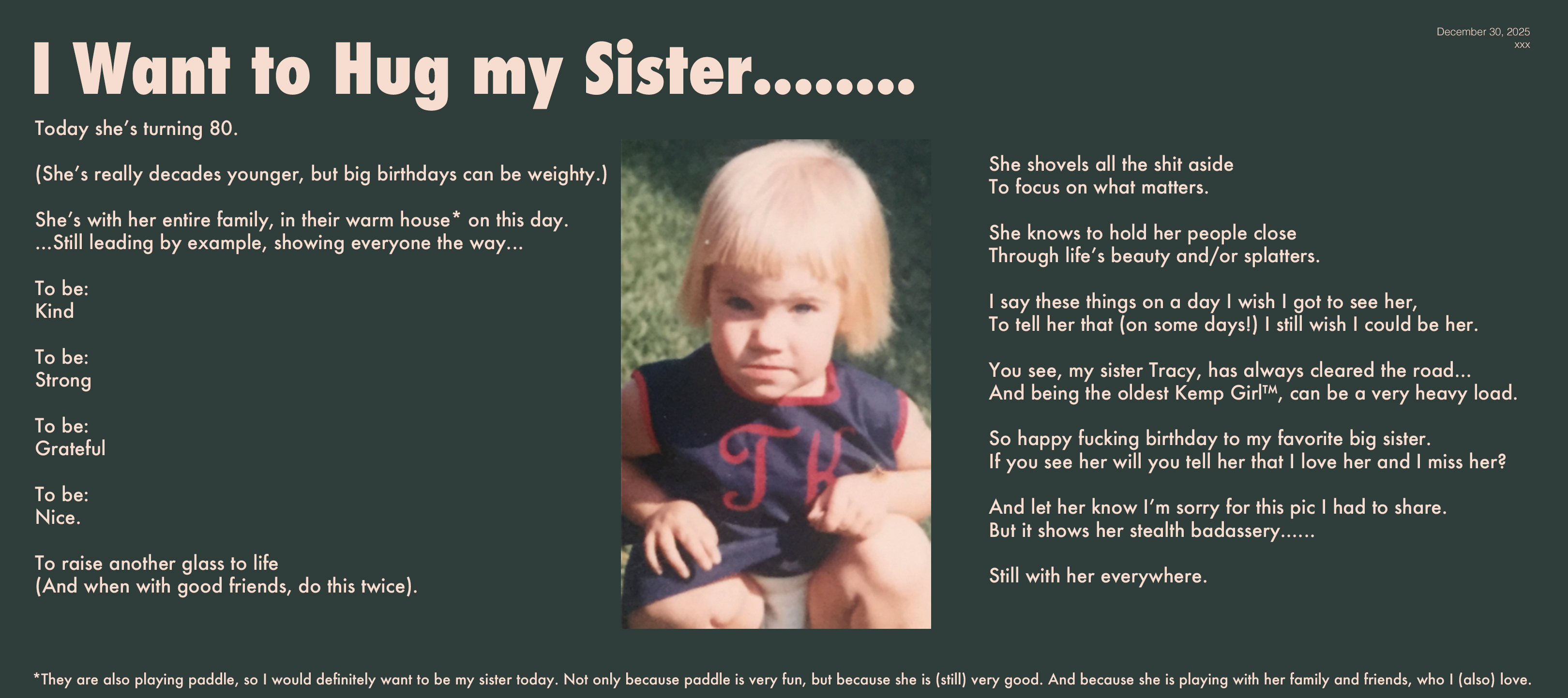 ps. Please feel free to try to ignore the mean spirited and/or political poems. I do. (This is why I stopped writing them, or at least the political ones. I’ll circle back if or when I can make sense of anything...)