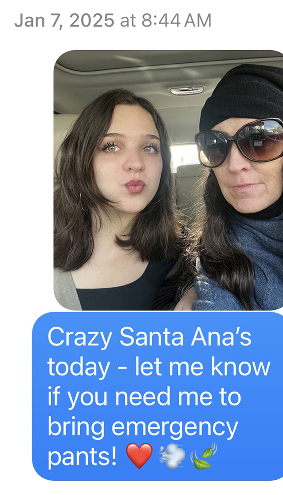 The week of the fires we evacuated 3 times (first from our house because of the Eaton Fire, then from my sister and brother-in-laws’ house because of the Sunset Fire, and then from our final stop with family friends because of the Palisades Fire.)